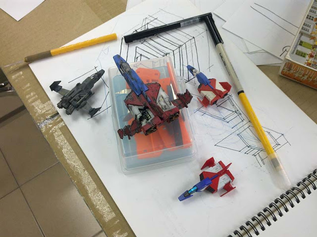 Basically we were contending with this project for incoming Bandai Action Kit World Cup 2010 or simply known as BAKWC 2010 under Group Category. This time, we were going into a bold move by incorporating couple of corefighters in an exhibition hall type diorama. Yeah..you heard it right! We were using modded corefighters instead 'gang-banging' with mechas! Something out of extraordinary in a norm competition as one of our member claimed that those 'little guys' deserved an attention. Without further ado, seven of us began to move into the first step of realizing our daring ideas..............